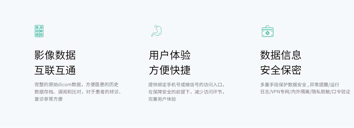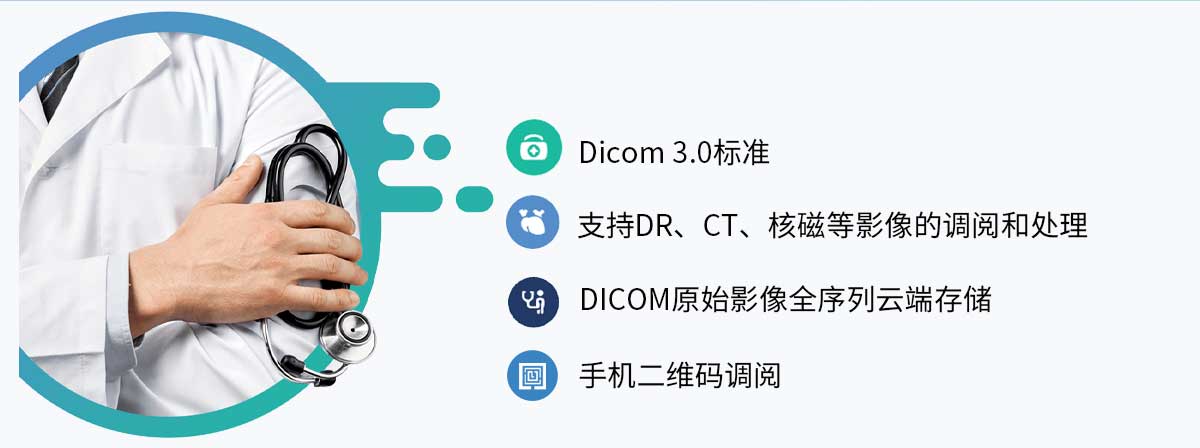 互联网+智慧医学云影像服务商 基于DICOM3.0标准,云端长期存储 患者随时随地调阅影像 医生随时随地进行会诊